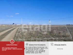 Объект 8394. Продается участок 612 соток c/х назначения в районе с. Жаворонки.Про участок:- Участок 6,12 гектара,- Разрешенное использование - сельскохозяйственное использование,- Территория не огорожена забором,- Подъезд: непосредственно вдоль асфальтированной дороги,- Электричество: в 400м от границы участка,- Водоснабжение: необходимо бурить скважину,- Газоснабжение: в населенном пункте.Инфраструктура:Участок ровный, неправильной прямоугольной формы, размерами приблизительно 320*190м. Расположен в хорошем месте в непосредственной близости от с. Жаворонки. Земля плодородная, активно выкупается и обрабатывается. Земля находится непосредственно вдоль асфальтированной дороги, так же вдоль участка проходит хорошая грунтовая дорога.Отличная транспортная развязка, до ближайшего с. Ивановка 7км, г. Саки 20 - 30 мин на машине, до моря (с. Новофедоровка, с. Фрунзе) около 20 - 30 минут. Вдоль с. Жаворонки протекает река Тобе - Чокрак, так же в непосредственной близости Межгорское водохранилище. Кадастровый номер: 90:11:090301:174.Очень красивое и перспективное место, для ведения агробизнеса, экотуризма, под виноградники или теплицы, вдали от городской суеты и вблизи от моря!Цена на такие земли будет только расти, успейте приобрести!Про документы: один взрослый собственник. Документы РФ, В СОБСТВЕННОСТИ (не аренда), выполнено межевание, ограничений и обременений нет. Можно купить объект удаленно!Про показы: оперативно по предварительной договоренности.Звоните, чтобы назначить просмотр!