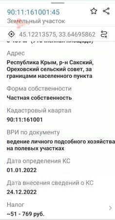 Продам участок в селе Орехово, СПК Овощевод!Земельный участок размером 6,14 соток.Удобное место расположение, на электричество поданы документы на подключение.Участок правильной прямоугольной формы.До центра поселка 1 км, рядом магазины, в 1.5 км трасса Евпатория Симферополь, школа и детсад в пешей доступности.Дополнительно оплачивается комиссия покупателем 2.5%, но не менее 70 000 рублей.Земельный участок в собственности! Дополнительно оплачивается комиссия покупателем.При звонке сообщите, пожалуйста, номер объекта 2983, чтобы мы могли предоставить вам интересующую информацию оперативно.