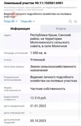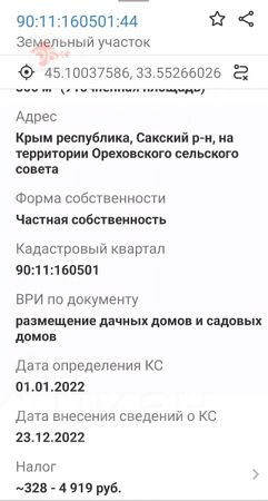 Продается участок 6.79 соток в КП Лазурный, рядом с селом Уютное.Участок правильной прямоугольной формы, не огорожен по периметру.Категория земли: Земли населенных пунктов. Разрешенный вид использования: Для индивидуального жилищного строительства. К участку в данной нарезке уже подведено электричество и центральное водоснабжение. Дороги между участками отсыпаны щебнем. В ближайшее время будет подведен газ.От участка до центра села 1.5 км. До города Евпатория 5 км. До моря 2.5 км.В селе Уютное имеется вся необходимая инфраструктура для постоянного проживания и отдыха.Документы РФ. Звоните, отвечу на все интересующие вопросы. МЫ ГАРАНТИРУЕМ ФИНАНСОВУЮ БЕЗОПАСНОСТЬ ДЛЯ НАШИХ КЛИЕНТОВ.Полное юридическое сопровождение сделки.Высокий шанс одобрения ипотеки.Звоните, с удовольствием ответим на ваши вопросы!Код пользователя: 167729Номер в базе: 4434585