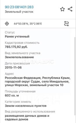 Объект 2144. Откройте для себя возможность владеть кусочком крымского рая! Предлагается к продаже прекрасный участок в живописном селе Миндальное, расположенном в окрестностях уютного города Судак. Этот уголок Крыма славится своим уникальным сочетанием природных красот и культурных достопримечательностей, делая его идеальным местом для жизни и отдыха.Одним из главных преимуществ этого участка является его расположение в непосредственной близости от динамично развивающегося арт-кластера ''Таврида.АРТ''. Здесь, в окружении талантливых художников, музыкантов и актеров, вы сможете погрузиться в атмосферу творчества и вдохновения, посещая выставки, концерты и мастер-классы, которые регулярно проходят на территории кластера.Любители моря и пляжного отдыха по достоинству оценят близость участка к знаменитому пляжу Меганом. Это одно из самых живописных мест в Крыму, где кристально чистая вода, просторные песчаные и галечные пляжи, а также уникальный ландшафт создают идеальные условия для релаксации и активного отдыха на природе.Участок предлагает широкие возможности для реализации ваших архитектурных и дизайнерских задумок. Здесь вы сможете построить дом своей мечты, спроектировав его в соответствии со своими предпочтениями и потребностями. Благодаря живописным окрестностям и благоприятному климату, жизнь здесь будет наполнена гармонией и удовольствием.Миндальное это тихое и уютное село с развитой инфраструктурой и дружелюбными жителями. Близость к Судаку обеспечивает легкий доступ ко всем городским удобствам и развлечениям.Не упустите свой шанс стать обладателем этого уникального участка в Миндальном! Это не просто земля, это возможность создать свой собственный уголок рая в одном из самых красивых и перспективных мест Крыма.Звоните прямо сейчас, чтобы узнать все подробности и договориться о просмотре! Ваш будущий дом ждет вас в Миндальном!Не все объекты нашего агентства размещаются в открытой рекламе. Многие предложения доступны только через наших агентов — обращайтесь, и мы предложим лучшие варианты.