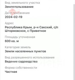 Продам участок в Михайловке!Не упустите свой шанс стать обладателем шикарного земельного участка в Сакском районе, с. Михайловка!Это уникальное предложение для тех, кто мечтает о собственном доме в Крыму.Площадь участка составляет 10 соток. Это достаточно для реализации самых смелых идей по строительству и ландшафтному дизайну.Категория земель ИЖС позволяет не только возвести дом для проживания, но и оформить его в собственность.Все необходимые коммуникации (свет, вода, газ) проходят рядом, что существенно упрощает процесс подключения.Расположенный в тихом и уютном месте, с. Михайловка предлагает своим жителям чистейший воздух, прекрасные виды и спокойный образ жизни. Но при этом не стоит забывать, что район обладает развитой инфраструктурой, и вы всегда будете в центре событий.Этот участок станет идеальным решением для тех, кто ценит комфорт и экологичность. Не упустите свой шанс сделать свою жизнь ярче и насыщеннее.Обращайтесь уже сейчас, чтобы стать обладателем этого замечательного участка. Сделайте свою жизнь еще более комфортной и счастливой!Дополнительно оплачивается комиссия покупателем.При звонке сообщите, пожалуйста, номер объекта 1842, чтобы мы могли предоставить вам интересующую информацию оперативно.
