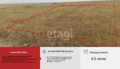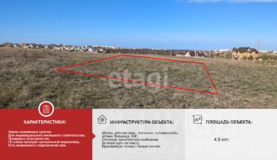 Продам участок площадью 4,5 соток в курортном поселке Черноморское. Вид разрешенного использования индивидуальное жилищное строительство (ИЖС).Участок ровный, правильной прямоугольной формы. По улице проходит газ, электричество. Участок без строений, чистый, не огражден, что значительно упрощает процесс проектирования и застройки. По соседству идет активная застройка.Черноморское активно развивающийся и застраивающийся курортный поселок. Развитая социальная и бытовая инфраструктура, включающая школы, детские сады, магазины, супермаркеты, аптеки, медицинский пункт и АЗС, обеспечивает комфорт для постоянного проживания. Транспортная доступность поселка высокая. Красивейшие пляжи с белым песком. До моря три километра.Документы РФ. Полное юридическое сопровождение, возможно дистанционное оформление сделки. Звоните! Отвечу на все ваши вопросы, проведу показ. МЫ ГАРАНТИРУЕМ ФИНАНСОВУЮ БЕЗОПАСНОСТЬ ДЛЯ НАШИХ КЛИЕНТОВ.Полное юридическое сопровождение сделки.Высокий шанс одобрения ипотеки.Звоните, с удовольствием ответим на ваши вопросы!Код пользователя: 194312Номер в базе: 10663145