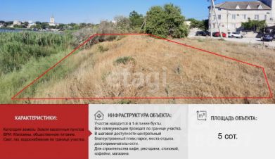 Уникальное предложение! Выгодная инвестиция! Участок 5 соток под Ваш бизнес в курортном прибрежном поселке Черноморское! Продажа по переходу права долгосрочной аренды. Разрешенные виды использования: Магазины. Общественное питание. Участок находится в 1-й линии бухты. Участок ровный, пологий песчаный спуск к воде. Все коммуникации проходят по границе ( электричество, газ, центральное водоснабжение). Идеальное место для строительства кафе, ресторана, столовой, кофейни, магазина.Развитая инфраструктура поселка и близость к жилым массивам обеспечивают постоянный поток клиентов. В шаговой доступности центральный благоустроенный пляж, парки, места отдыха, достопримечательности. Не упустите шанс инвестировать в перспективный объект!Звоните, договоримся о просмотре! БЕЗ КОМИССИИ ДЛЯ ПОКУПАТЕЛЕЙ! МЫ ГАРАНТИРУЕМ ФИНАНСОВУЮ БЕЗОПАСНОСТЬ ДЛЯ НАШИХ КЛИЕНТОВ.Полное юридическое сопровождение сделки.Высокий шанс одобрения ипотеки.Звоните, с удовольствием ответим на ваши вопросы!Код пользователя: 183659Номер в базе: 9147021