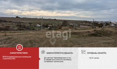Продается земельный участок в поселке городского типа Черноморское. Общая площадь земельного участка 10,51 соток. Назначение земельного участка -для индивидуального жилищного строительства. Участок ровный, чистый, без построек. Все коммуникации рядом. По улице проходит свет, скважина можно бить. Вокруг жилая застройка. Очень спокойное тихое место от городской суеты подойдёт под строительство дома. До центрального пляжа 3км.В поселке хорошо развита инфраструктура: школы, детские сады, магазины, аптеки, МФЦ, спортплощадки. Самый красивый пляж с бирюзовой водой и белым песком. Хорошее транспортное сообщение во все стороны Крыма. Документы РФ готовы к сделке! С удовольствием проведу показ! Звоните, отвечу на все вопросы! МЫ ГАРАНТИРУЕМ ФИНАНСОВУЮ БЕЗОПАСНОСТЬ ДЛЯ НАШИХ КЛИЕНТОВ.Полное юридическое сопровождение сделки.Высокий шанс одобрения ипотеки.Звоните, с удовольствием ответим на ваши вопросы!Код пользователя: 182478Номер в базе: 10099070