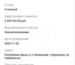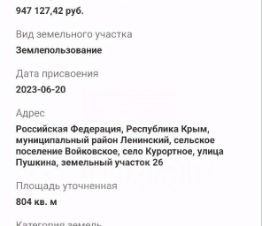 Продается видовой участок в Крыму с.Курортное ИЖС.Участок 7 соток находится на возвышенности от центральной дороги 100м.Свет по границе участка,вода привозная,интернет.Перспективное место для отдыха,рядом будут строить Аквапарк.Кадастровый номер 90:07:080401:2035(2034)