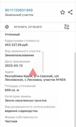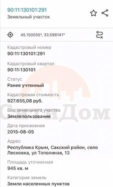Продаётся земельный участок в селе Лесновка в активно застраивающемся районе, улица не проездная, тихая, спокойная . Асфальтированный подъезд к участку. Участок 10 соток,прямоугольный,ровный.Коммуникации проходят вдоль участка (вода,газ ,свет).Рядом в поселке находится школа,детский садик,ФАП,магазины,автобусная остановка в 5 минутах.мУдобное расположение до города Саки 2 км, до моря 5 км,до г.Евпатория 20 км,до аэропорта и столицы полуострова г. Симферополь 40 минут ,регулярное транспортное движение.Документы Российского образца, готовы к продаже. Наша комиссия 79000 р.+1% от стоимости объекта, но не менее 70000 р.МЫ ГАРАНТИРУЕМ ФИНАНСОВУЮ БЕЗОПАСНОСТЬ ДЛЯ НАШИХ КЛИЕНТОВ.Полное юридическое сопровождение сделки.Высокий шанс одобрения ипотеки.Звоните, с удовольствием ответим на ваши вопросы!Код пользователя: 113474Номер в базе: 3568834