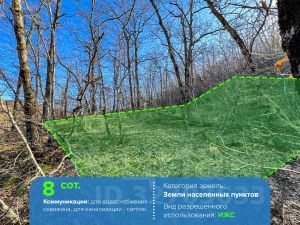 | ИЖС| до моря 2,2 км| ИПОТЕКА ВОЗМОЖНАПродается земельный участок в поселке Малый Маяк (Алушта) улица Ручейная.Площадь: 8 соток. Назначение земельного участка: индивидуальное жилищное строительство. Участок имеет уклон, с видом на лес. Коммуникации: для водоснабжения - скважина, для канализации - септик. Локация: до пляжа 2,2 км, до Алушты 9 км, до центра Малого Маяка 2 км, до школы и магазинов 2 км, до южнобережного шоссе 2,7 км, до Ялты 24 кмКоличество собственников: одинДополнительно оплачивается комиссия покупателя в случае подбора объектов недвижимости.Объект 108587