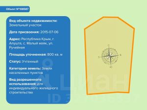 КООРДИНАТЫ УЧАСТКА: 44.598835, 34.367830АДРЕС: г. Алушта, с. Малый маяк, ул. Виноградная, 72ПРАВОВОЙ СТАТУС И ЦЕЛЕВОЕ НАЗНАЧЕНИЕПодтвержденное право собственности, проведено межевание, все документы оформлены по законодательству РФ. Имеются кадастровая выписка и выписка из ЕГРЮЛ. Продажа осуществляется от собственника (юр. лицо).Категория земель: Земли поселений.Вид разрешенного использования: размещение дачных домов и садовых домов.МЕСТОРАСПОЛОЖЕНИЕМалый Маяк - небольшое село на южном берегу Крыма, в 8 км к югу от Алушты, с восточной стороны автодороги Симферополь — Ялта.Участок расположен на ул. Виноградная в 500 м от берега моря или в двух минутах езды на машине. Расстояние до Ялтинского шоссе составляет 2 км. Непосредственно к самому участку ведет дорога с качественным асфальтобетонным покрытием. Вблизи находится элитный поселок Санта-Барбара, известный своими рекреационными комплексами, отелями и гостиницами премиум класса.ОСОБЕННОСТИЧистейший воздух Крымских гор, живописный ландшафт и близость моря основные отличительные черты местности. Особую уникальность участку придает природный микроклимат Малого Маяка, лечебные свойства которого сохраняются круглогодично. Неотъемлемой частью притягательности этого места считается и наличие большинства культурных и исторических достопримечательностей.Технические условия и возможность подключения к коммунальным сетям планируемого объекта определяются и предоставляются на основании дополнительного запроса.Вы получите подробную информацию по электро-, тепло-, газо-, водоснабжении и водоотведении на участке.Торг возможен. Звоните, чтобы успеть забронировать, получить подробную информацию и лично посмотреть участок!