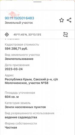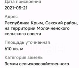 Продам участок в курортном поселке с Молочное.Участок 6.19 соток треугольной формы , межеван. Земли населенных пунктов . Вид разрешенного использования - ведение садоводство, что предоставляет все возможности для возведения жилого дома с полноценным фундаментом и пропиской, участок располагается возле озера 375 метров. Электрические столбы по границе участка .До центра поселка 500 м. В поселке есть развитая инфраструктура: распологается Молочненская средняя школа, детский садик Теремок, действующий ТОСП ''МФЦ'', аптеки, амбулатория, пункты выдачи и разнообразные магазины. Постоянно ходит маршрутный транспорт до г. Евпатории( 10 км) и в соседние поселки. Село находится возле моря (800 м) и лечебных соленых озер (375 м) . Широкая береговая линия песчаных пляжей. Летом каждые 30 минут до пляжа ходит автобус. Не упустите шанс стать владельцем этого перспективного участка. Рядом с селом есть вся нужная инфраструктура, есть магазины ,кафе , гостевые дома, ФАП.Звоните прямо сейчас, чтобы узнать подробности и забронировать участок! Любая форма оплаты в том числе ипотека. МЫ ГАРАНТИРУЕМ ФИНАНСОВУЮ БЕЗОПАСНОСТЬ ДЛЯ НАШИХ КЛИЕНТОВ.Полное юридическое сопровождение сделки.Высокий шанс одобрения ипотеки.Звоните, с удовольствием ответим на ваши вопросы!Код пользователя: 143752Номер в базе: 10044941