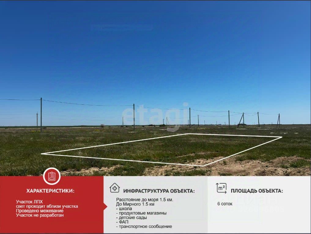 Продается привлекательный ЗЕМЕЛЬНЫЙ УЧАСТОК, в экологически чистом районе в приморском поселке Поповка, ул. Солнечная, Сакского района. Расстояние до города Евпатория 25 км. До моря 10 минут пешком. Площадь участка 10 соток. Категория земель: земли населенных пунктов. Вид разрешенного использования: для индивидуального жилищного строительства. Участок ровный, прямоугольной формы. Вода центральная рядом с участком. Свет установлен счетчик. Забор с трех сторон и с лицевой стороны фундамент под забор.Участок располагается в хорошем месте, рядом расположены жилые дома. Автомобильная дорога находится в непосредственной близости.В поселке есть все для комфортной жизни: магазины, школа, детский сад, амбулатория. Документы РФ. Межевание проведено.Кадастровый номер 90:11:240301:316.