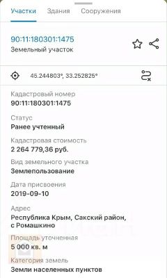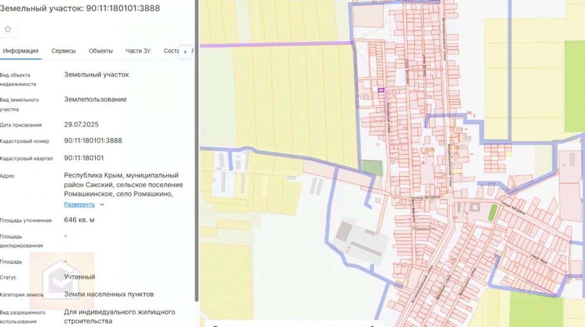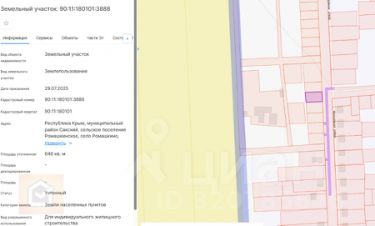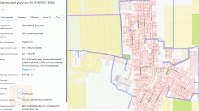 В продаже Земельный участок 18 соток (в собственности) в пригороде Евпатории!!! Расположен в самом Центре с. Ромашкино.Категория земель: Земли населенных пунктов, Вид разрешенного использования: для индивидуального жилищного строительства, Участок ровный, правильной формы. Главная асфальтированная улица Есть возможность сделать 2 входа на участок (со стороны улицы и со стороны огорода) Коммуникации (газ, свет, вода) проходят по границе участка!Рядом: - Остановка общественного транспорта - Магазины - Школа, детский сад - Сельский совет, офис МФЦ, Клуб, почта - Wildberries,Ozon - Сквер, детская площадкаРазвито транспортное сообщение: - автобусы ходят каждый час, - рядом проходит трасса Таврида, что позволит добраться до любой точки Крыма за комфортное время До города и до моря - 10 км!Документы оформлены в соответствии с законодательством РФ. Проведено межевание! Есть возможность разделить данный участок на два по 9 соток!