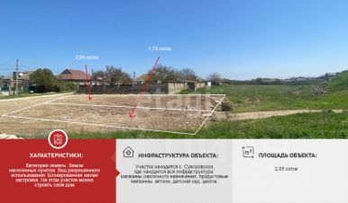 Продам земельный участок площадью 6,05 сотки не далеко от г. Евпатория, на территории Суворовского сельского совета.Земельный участок имеет правильную прямоугольную форму, относится к категории сельскохозяйственных земель с разрешенным видом использования — ведение личного подсобного хозяйства. До лини ЛЭП 200 метров, подключение к электросетям возможно по заявке в ресурсоснабжающую организацию. Подъезд к участку осуществляется по асфальтированной дороге. Крым, несмотря на санкции и другие сложности, все равно остается инвестиционно привлекательным и экономически стабильным, а также постоянно развивается.Участок находится возле г. Евпатория, около 6 км. или 5 мин. на автомобиле. Еще ближе находится с. Суворовское (2 км.), в котором хорошо развита инфраструктура: детский сад, школа, амбулатория, разнообразные магазины и пункты выдачи.Местоположение участка сочетает преимущества тихой сельской жизни с близостью к природным и рекреационным объектам. Всего 2 километрах находится озеро Сасык — крупнейший соленый водоем Крыма, а до морского побережья — 8 км.Участок продается с полным пакетом документов РФ, готовых к быстрой онлайн-сделке. Один собственник гарантирует прозрачность и отсутствие юридических рисков. МЫ ГАРАНТИРУЕМ ФИНАНСОВУЮ БЕЗОПАСНОСТЬ ДЛЯ НАШИХ КЛИЕНТОВ.Полное юридическое сопровождение сделки.Высокий шанс одобрения ипотеки.Звоните, с удовольствием ответим на ваши вопросы!Код пользователя: 151271Номер в базе: 10429241