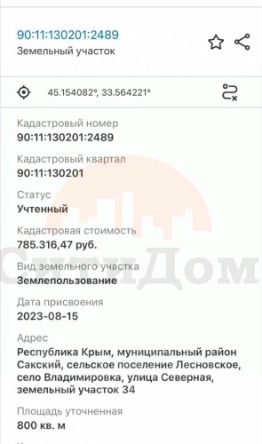 Земельный участок, Владимировка