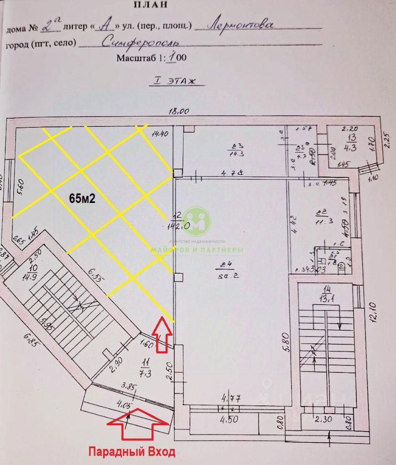 Арт. 116878771 Сдается в аренду коммерческое помещение! Местоположение: 1й Этаж нежилого здания на перекрестке Проспекта Победы и ул.Лермонтова, г.Симферополь. Преимущества: Удачное расположение на первой линии Сверхвысокий пешеходный и автомобильный трафик Идеальное место для торговли, медицинского учреждения или другого бизнеса. Характеристики помещения: Общая площадь: 65 м² Свободная планировка, высокие потолки Электричество: 20 кВт., возможно увеличение. Коммуникации: центральное водоснабжение и водоотведение Вход: Центральный, возможна круглосуточная работа Дополнительные удобства: Парковка Рядом с остановкой общественного транспорта Здание при выходе из подземного перехода Без комиссии для Арендатора Возможны кредитные каникулы на период ремонта и заезда (обсуждаются) Звоните, договоримся на просмотр!