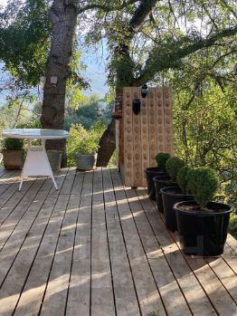 Сдаётся новый видовой фахверк. Дом с двумя спальнями, гостиной и с большой террасой, недалеко от Алушты, в горном посёлке, с хорошей асфальтированной дорогой, окружённый лесом, с уникальным микроклиматом, на участке 25 соток, с инжиром, хурмой, грушей и яблоней. Вид на море и вид на горы. До моря на машине 10 мин, до города 6 минут.Полное уединение и приватность.Современный дом с двумя спальнями (в одной спальне двухъярусная кровать , в другой большая двуспальная кровать) с огромной террасой вокруг всего дома.Большая кухня - гостиная с панорамными окнами, подогреваемый пол, современная техника, кондиционер, интернет, проектор, посуда и все необходимое для проживания. Парковка на 8 машин. Если снимать посуточно - от 4-х суток (20000 сутки). Комплимент, включено: виноот небольших виноделен Крыма.Уборка дома, по согласованию, возможна в любой период.Предоплата за 1 месяцЗалог 100 000 ₽