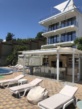 Сдается с октября по апрель дом с подогреваемым бассейном, с панорамным видом на море (350м) баня , павильон с мангалом, печь, газ плита, кофемашина, ледогенератор, тандыр.до моря спускаться до 10мин. парковочные места, огорожено высоким забором.Предоплата за 1 месяцЗалог 60 000 ₽