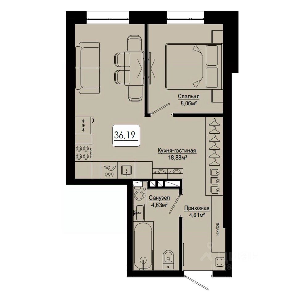 Общая площадь36,19 м2