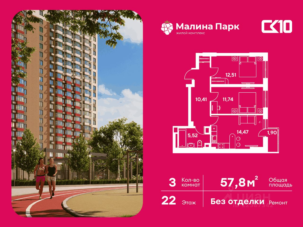 Продаётся 3-комнатная квартира в строящемся доме (Поз. 2-3), срок сдачи: II-кв. 2026, общей площадью 57.75 кв.м., на 22 этаже. Новый жилой комплекс ''Малина парк'' от группы компаний ''СК10'' расположен по адресу: г. Ростов-на-Дону, по ул. Малиновского.