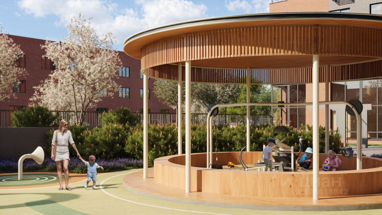 Благоустроенный двор-парк площадью 10 000 кв.м.: • Игровые площадки для детей всех возрастов и летний кинотеатр. • Отсутствие машин во дворе для безопасности детей и взрослых. • Подземный паркинг и большая наружная парковка. • Зоны воркаута. • Фонтан, амфитеатр, лабиринт и автогородок. • Отдельно выделенный участок для выгула питомцев за пределами двора.