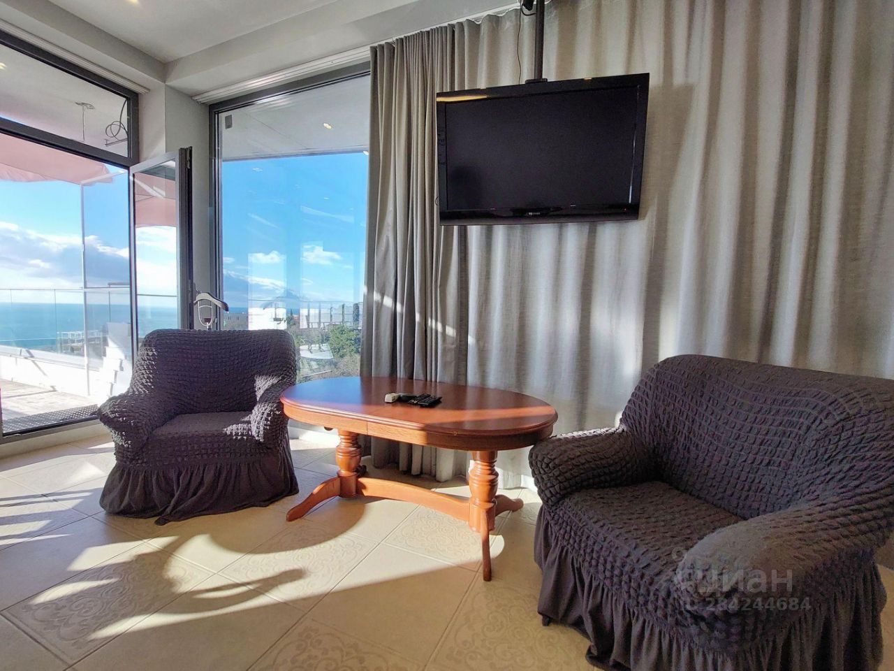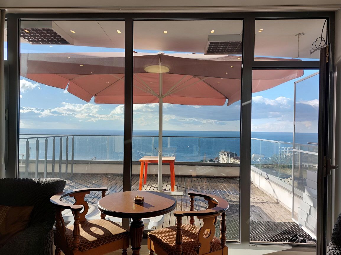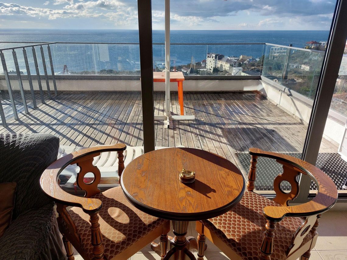 Продается видовая 2-х комнатная квартира в клубном доме ЖК ''Коста Мисхор'', расположенном в пригороде Ялты (пгт. Мисхор), всего в 570 метрах от пляжа. Общая площадь с учетом террасы 79 м2 (53.6 м2 внутренняя + 25.4 м2 открытая терраса). Планировка: спальня-кабинет с выходом на просторную видовую террасу, просторная кухня-столовая, совмещенный санузел (душевая кабина), прихожая. Квартира расположена на 2 этаже 6-эт дома. Остекление панорамные энергосберегающие оконные системы. В квартире всегда много света и воздуха. Из окон, а также с южной открытой террасы открывается панорамный вид на море и зелень Мисхорского парка. В квартире сделан хороший ремонт: качественная мебель, кач. межкомнатные двери, зонированное освещение, современная сантехника. В квартире установлен электробойлер Ariston, вместительная стиральная машина, холодильник BOSH, два кондиционера, посудомоечная машина. По всей квартире смонтирован электрический теплый пол.