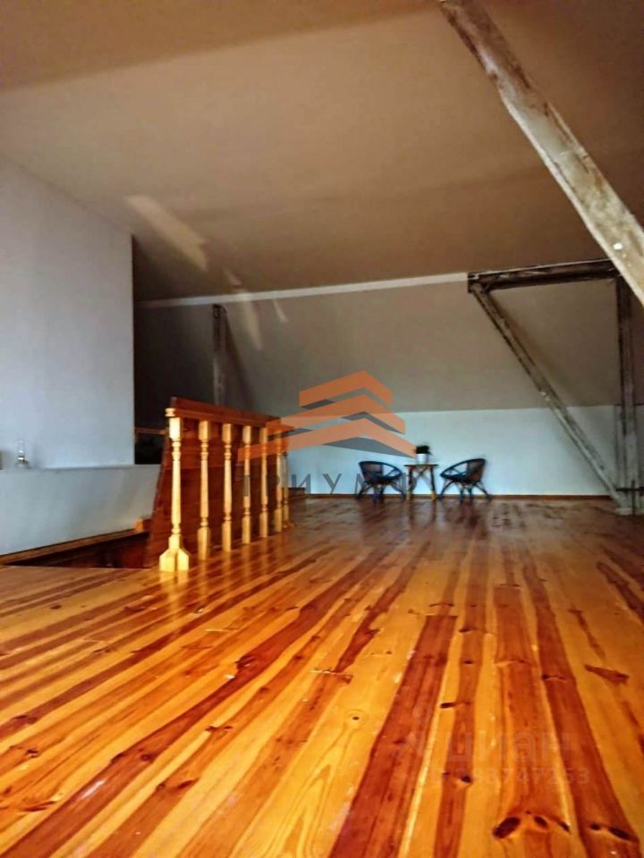 Большая ванная и туалет, просторный коридор с лестницей на 2-й этаж квартиры, 2 балкона +застекленная лоджия- эркер с колоннами и лепниной, отделанная деревом. Потолки-310 см. 2 уровень: однообъемное жилое помещение 88 кв.м., с мансардными окнами, красивым деревянным лакированным полом.