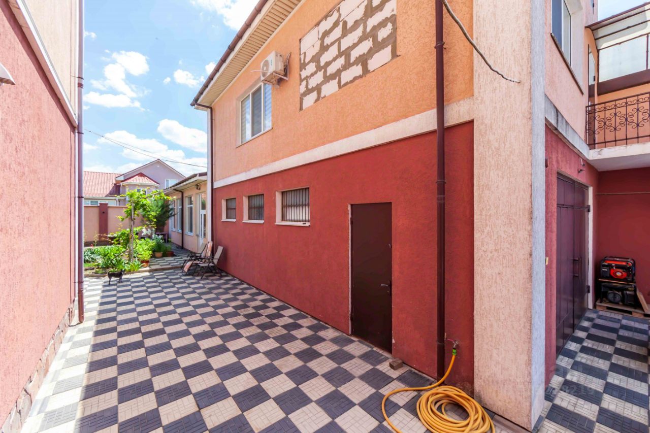 Уютный дворик с вечнозелёными растениями, розами, цветами, в саду плодоносящий инжир, яблоня, виноград. Остеклённая беседка 54 кв.м (она же летняя кухня) с мангальной зоной, камином на дровах, своей сплит- системой. Уличный санузел. В гараже на две машины есть ремонтная яма, два накопительных бака с проточной водой на 2000 л, стеллажи. Над гаражом двухкомнатная квартира 56 кв.м (кухня-студия, спальня, санузел) также готовая для проживания. Крыша покрыта металлочерепицей. Фундамент армированный, 1,5 м глубиной, выдержит десять этажей. Двор и каменный забор также на фундаменте, оформлены в едином стиле.