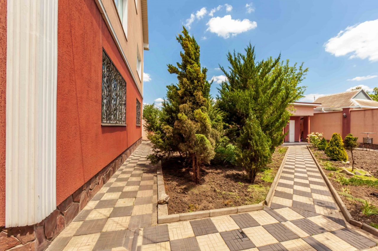 Продается трехэтажный дом в районе 7-ой горбольницы г. Симферополя. Дом просторный красивый уютный, для большой семьи. 2010 год постройки. Полностью готов для проживания. О таком можно лишь мечтать! Площадь 453,2 кв.м (кадастровый номер 90:22:010311:1572). На участке 8 соток (кадастровый номер: 90:22:010311:922). Три этажа, семь комнат (6 спален и гостиная). Построен из природного камня (ракушка). Продумано всё до мелочей - не забьёте и гвоздя. Весь первый этаж теплые полы. Здесь же - гостиная и две спальни, второй этаж - четыре спальни, третий этаж - зал. На каждом этаже санузлы: первый этаж - совмещённый с душем, второй этаж - раздельный с ванной, третий этаж - туалетная комната.