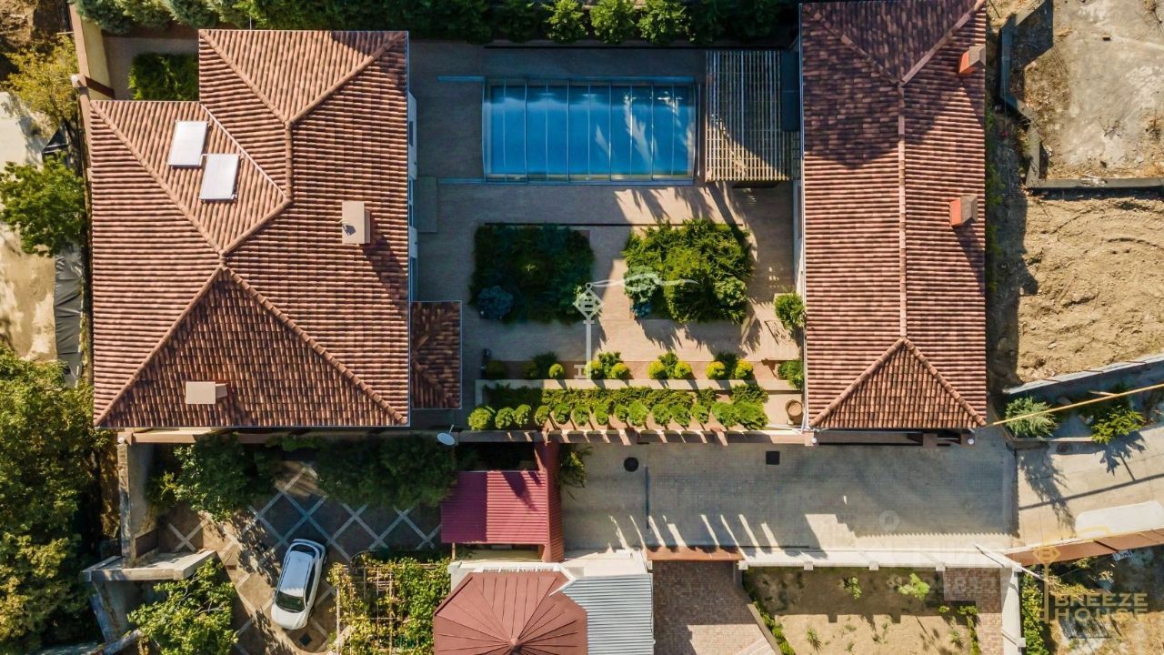 -Открытый бассейн 10х5м с подогревом и купольным остеклением. -Пергола для отдыха. -Высококлассная ландшафтная архитектура. -Крытая парковка на два авто.