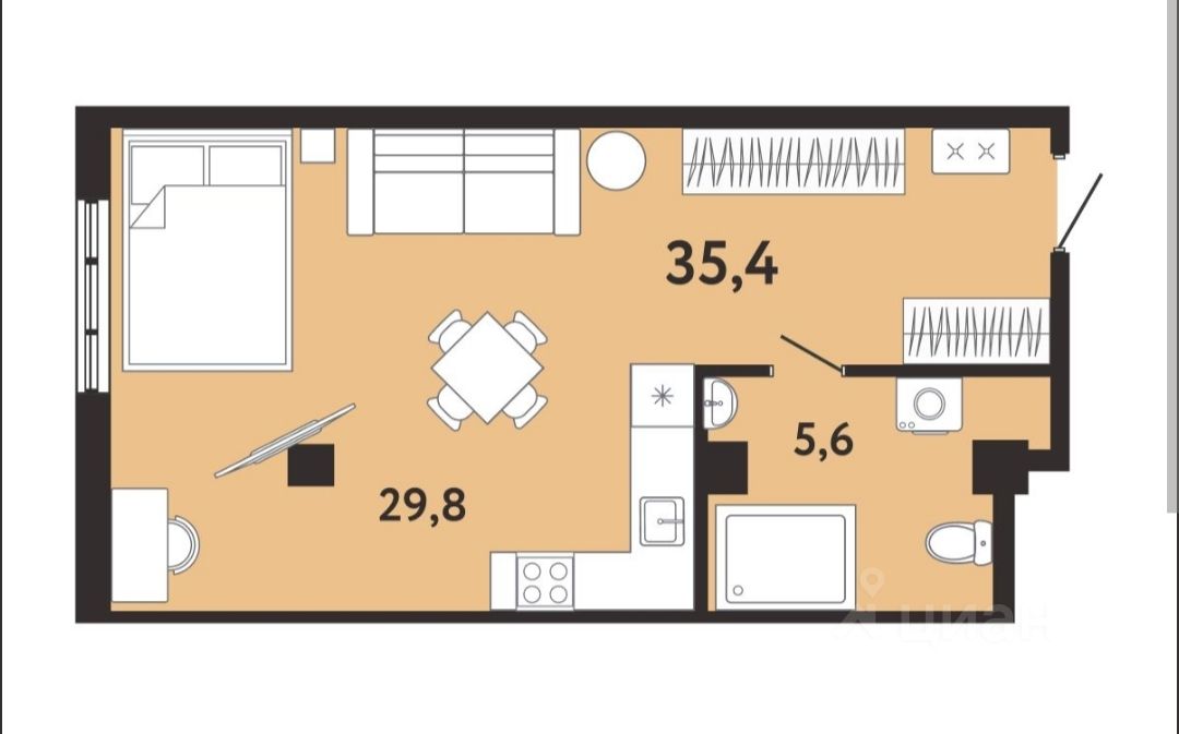 Площадь-35,4 м2