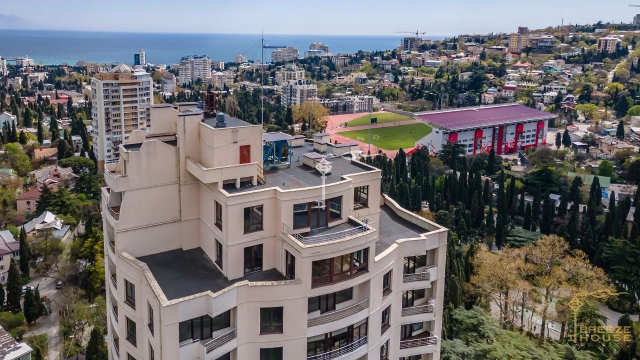 Продажа двухуровневого пентхауса с видами на горы, город, и море расположенного на 17 и 18 этажах престижного комплекса апартаментов ''Солярис'' с собственным парком и бассейном прямо в центре Ялты.