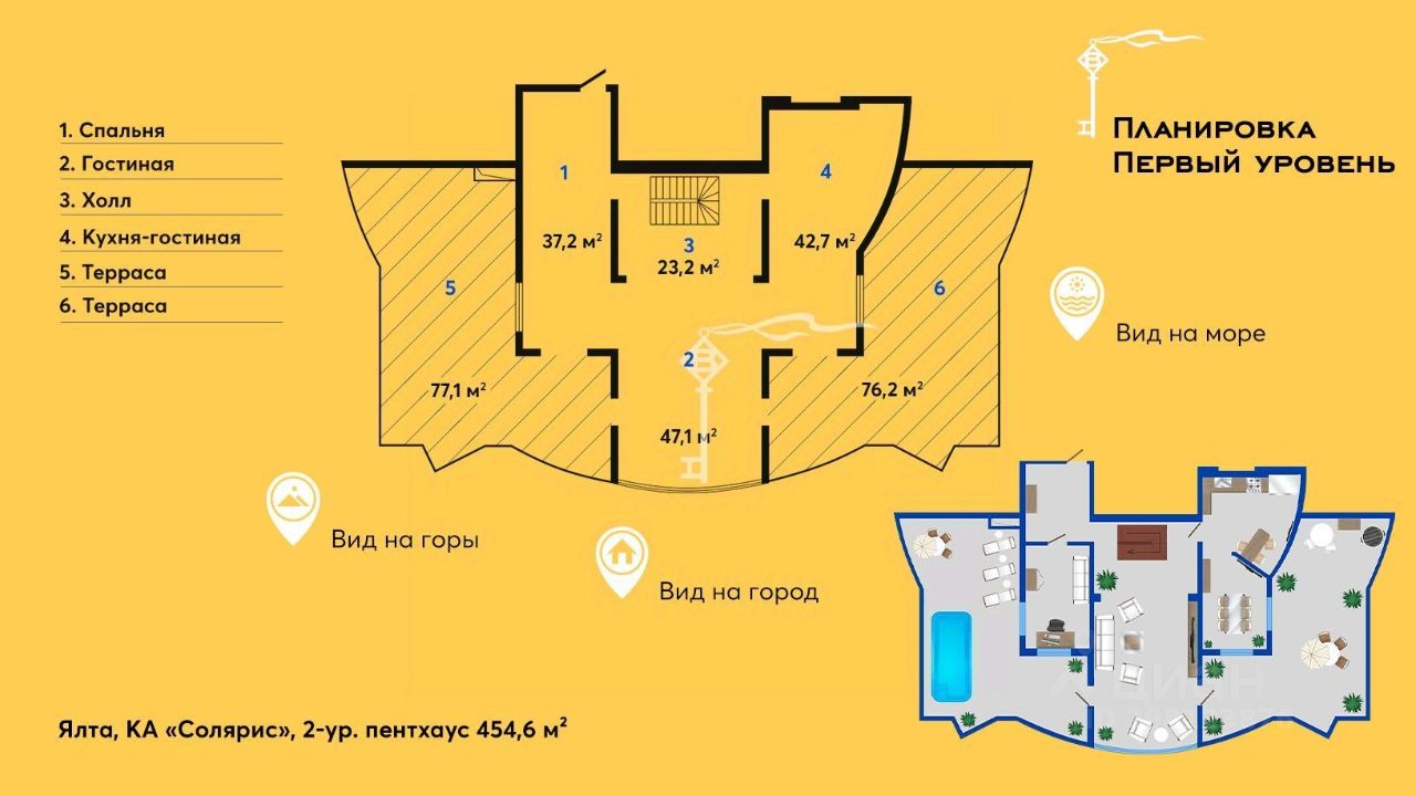 Этот пентхаус поистине уникален, что делает его одним из самых редких форматов жилья на рынке Ялты.