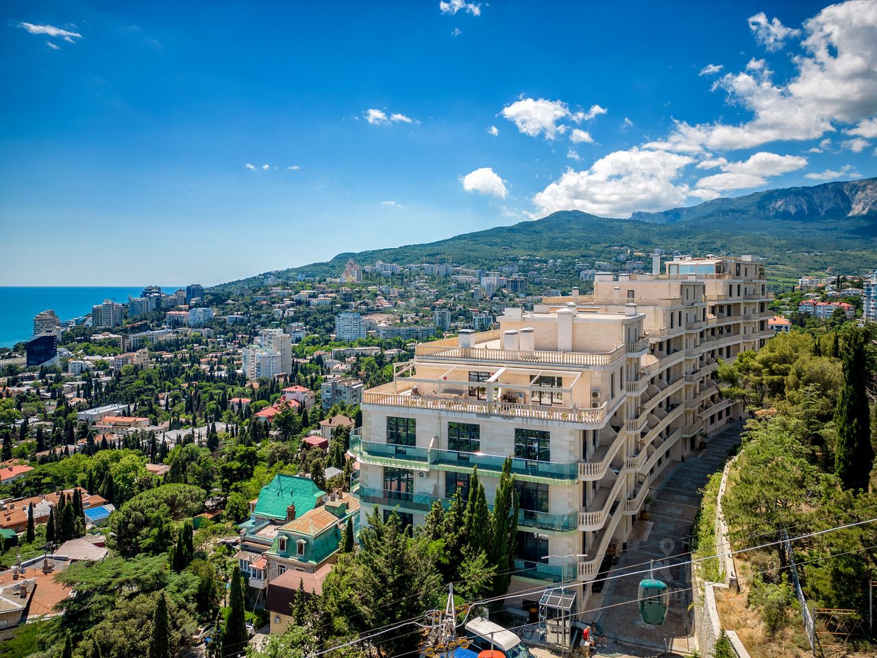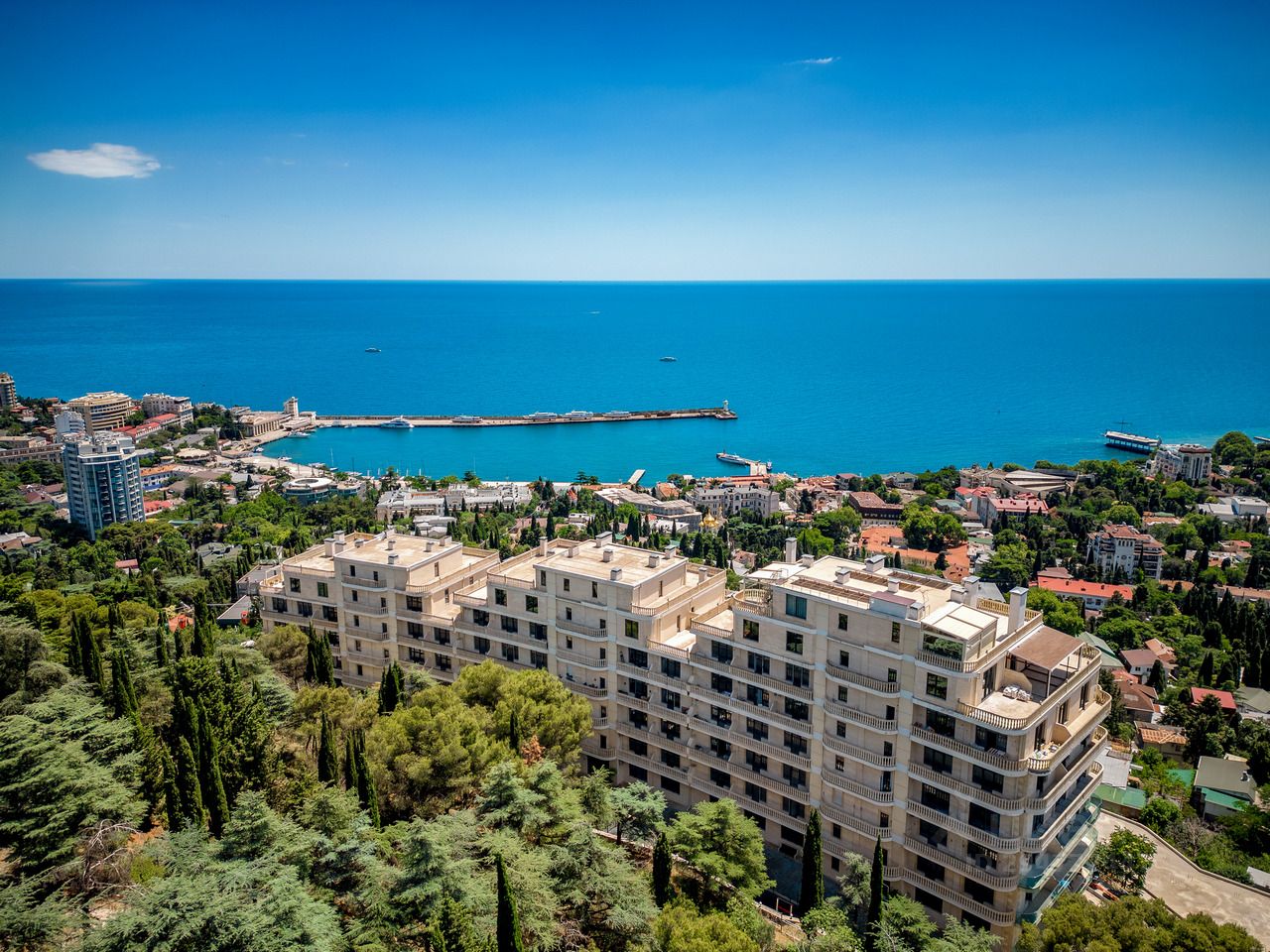Квартира в ЖК Аквамарин, общей площадью 89,8 кв.м, расположена на 8 этаже 8-ми этажного комплекса. Квартира свободной планировки с высокими потолками 3.40 и большой террасой 37,9 кв.м., которая позволяет наслаждаться морскими и горными пейзажами Ялты. Большая терраса при желании может быть приспособлена для размещения площадки для занятий спортом, отдыха, соляриев, озеленения и других хозяйственных целей. ЖК Аквамарин это новый сданный в эксплуатацию комплекс комфорт класса в самом сердце Ялты. Главной его особенностью является месторасположение и завораживающий вид на море и Ялту .Комплекс находится одновременно в центре города и на границе с парком.