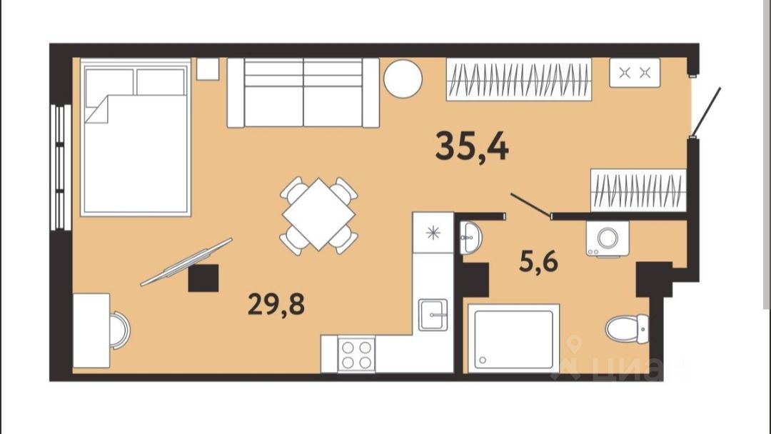 Площадь-35,40 м2