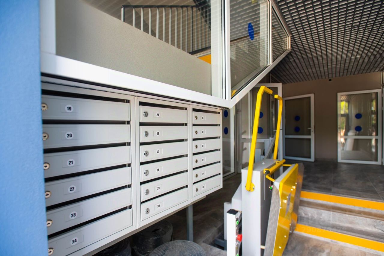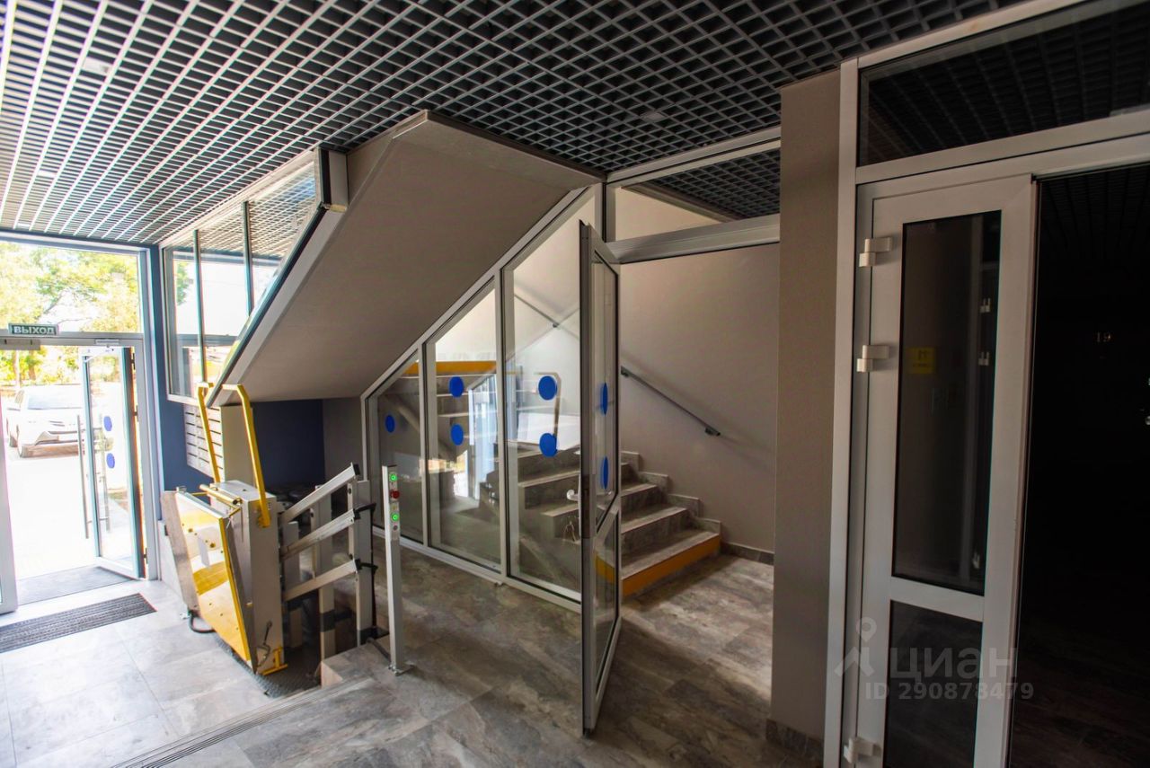 Входная группа оснащена наклонной платформой, для людей с ограниченными возможностями! В подъезде оборудована грузонесущее устройство и платформа, для подъема на первый этаж!