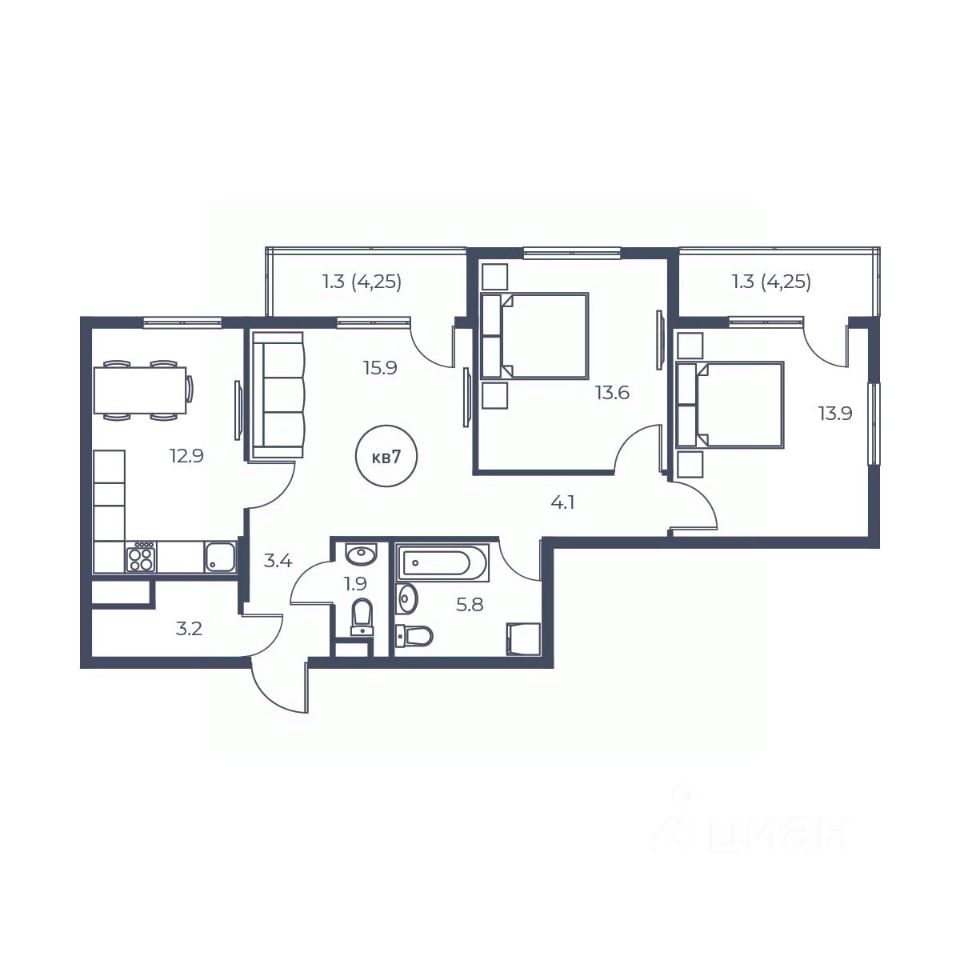 Кухня12,9 м2