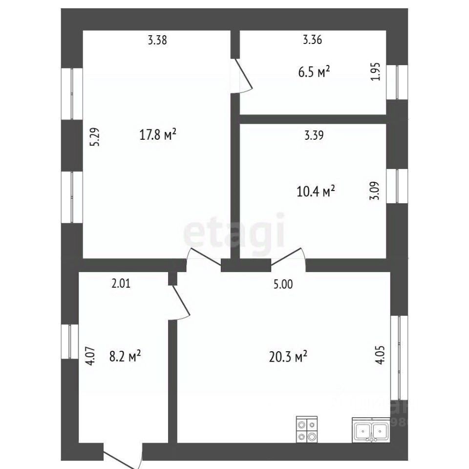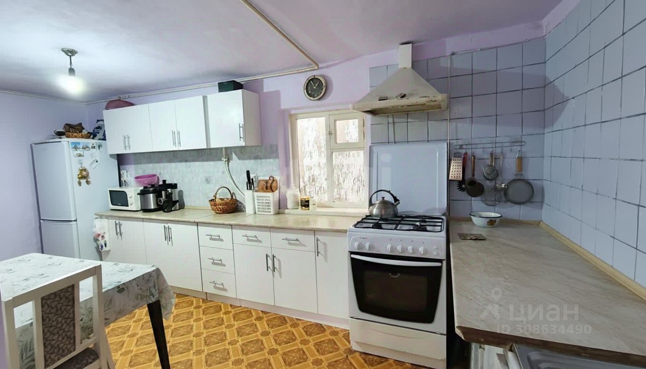 В планировке: две спальни, кабинет, просторная кухня и прихожая. Установлены качественные металлопластиковые окна, подключён тёплый пол на кухне, сделан хороший ремонт. Так же на участке, площадью 6 соток, выстроена летняя кухня, с двумя комнатами и санузлом. Комнаты жилые, установлен кондиционер, проведен интернет и ТВ. Отопление газовое, вода централизованная, канализация - септик. Во дворе есть гараж со смотровой ямой, подсобные помещения для хранения заготовок на зиму и инвентаря.