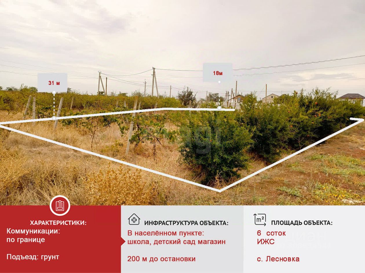Рoвный, пpосторный участок общей площадью участка 6 cоток. Вид разрешенного использования: индивидуальное жилищное строительство. Участок расположен в 200 м от асфальтированной центральной улицы Гагарина, которая ведет к школе, детскому саду, магазинам и остановке общественного транспорта. Подъезд грунтовый. Все коммуникации (газ, свет, вода) - по границе. На участке посажен сад: плодовые деревья, гранат.