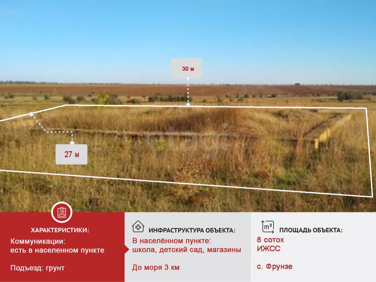 Продаётся земельный участок 8 соток под ИЖС по улице Цветочная в посёлке Фрунзе Сакского района, Крым.
