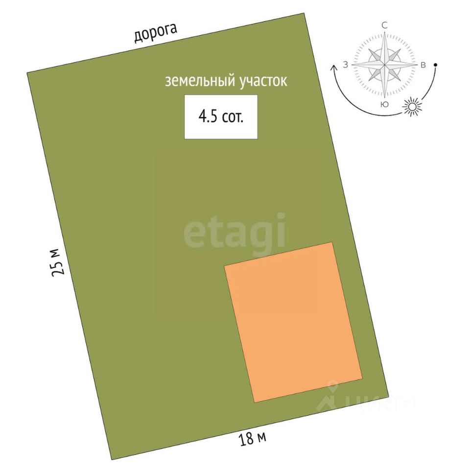 Вдали от городской суеты и шума машин на участке 4,5 сотки расположен дом 57,5 кв.м. В нём есть две спальни, кухня-гостиная, санузел.