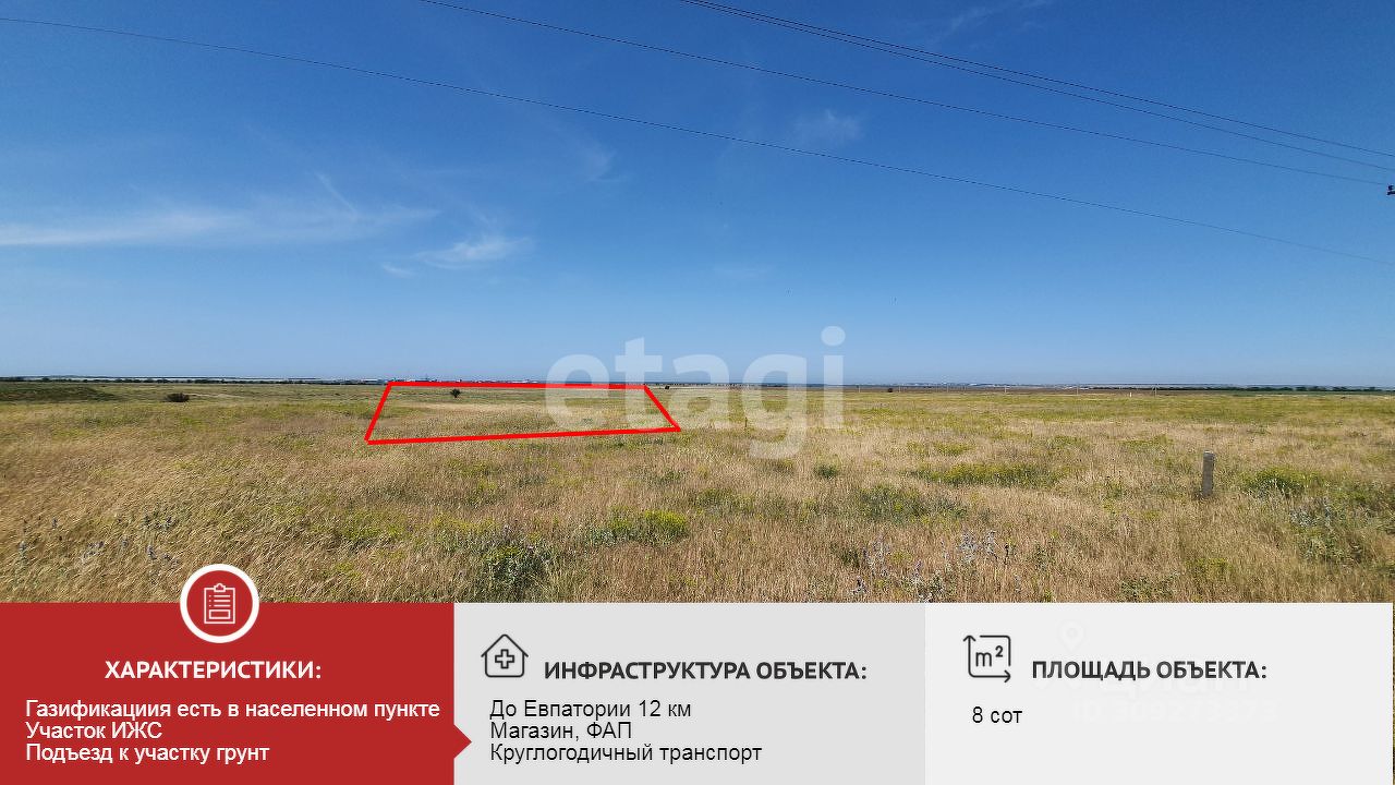 Уникальное предложение! Продается участок 8 соток в живописном селе Великое, всего в 10 км от курортного города Евпатории. Это идеальное место для строительства вашего загородного дома или коттеджа!