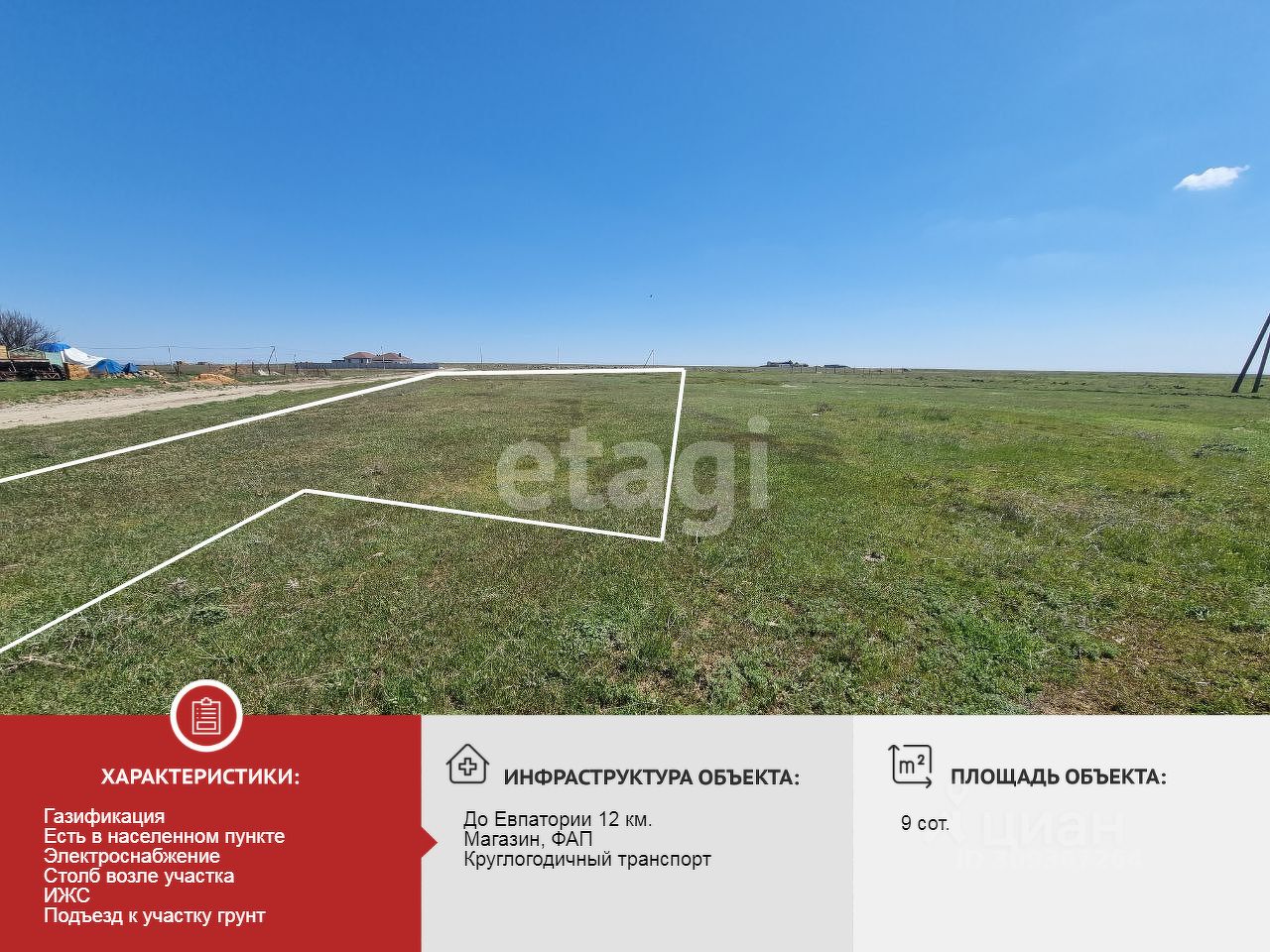 Уникальное предложение! Продается участок 9 соток в живописном селе Великое, всего в 10 км от курортного города Евпатории.