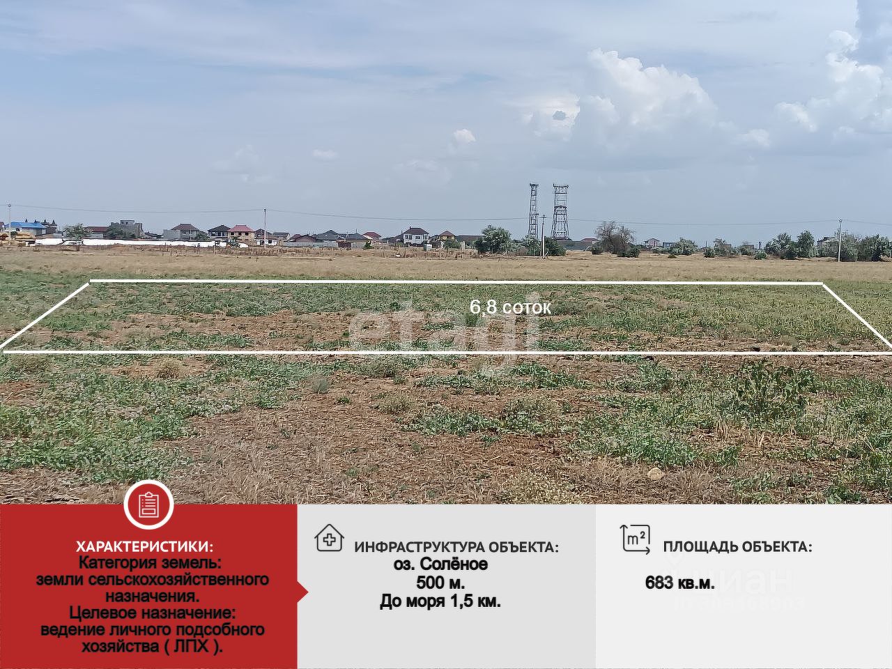 Продается участок общей площадью 6.8 соток на территории с. Молочное .