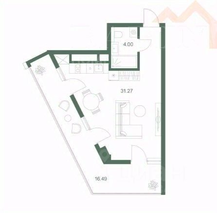 -Угловой видовой балкон, -Достаточно большая площадь, чтобы студию переоборудовать в апартаменты с большим количеством комнат,
