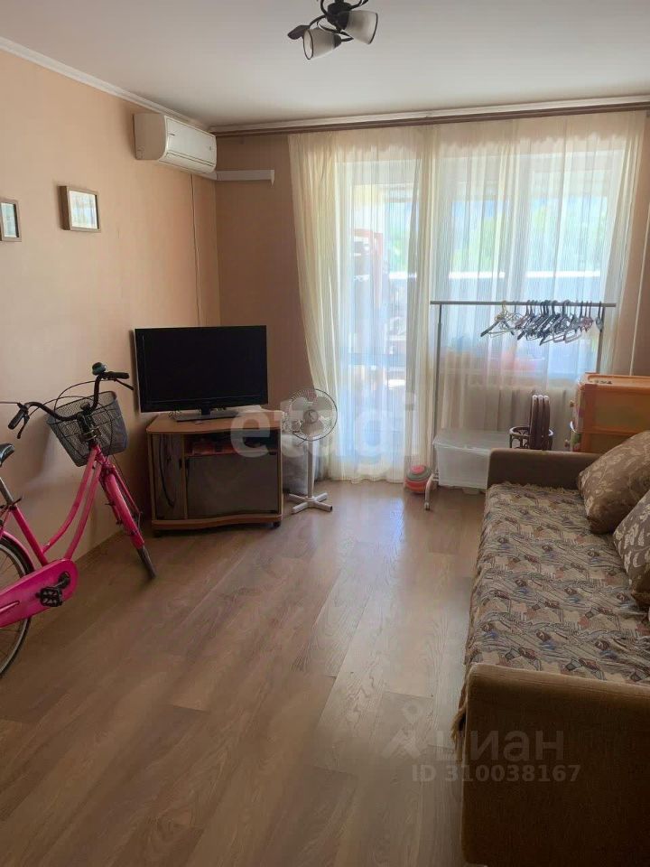 Общая площадь 31 м2, кухня 6,9 м2. Санузел совмещенный. Из комнаты и кухни выход на балкон -террасу с навесом, площадью около 15 м2, где можно сделать комнату . Окна выходят на южную сторону. Квартира не угловая. Теплая, ухоженная, с косметическим ремонтом. Под окнами квартиры сквер, зелёный двор, замечательные соседи.