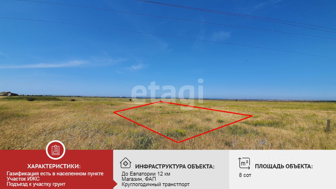 Уникальное предложение! Продается участок 8 соток в живописном селе Великое, всего в 10 км от курортного города Евпатории. Это идеальное место для строительства вашего загородного дома или коттеджа!