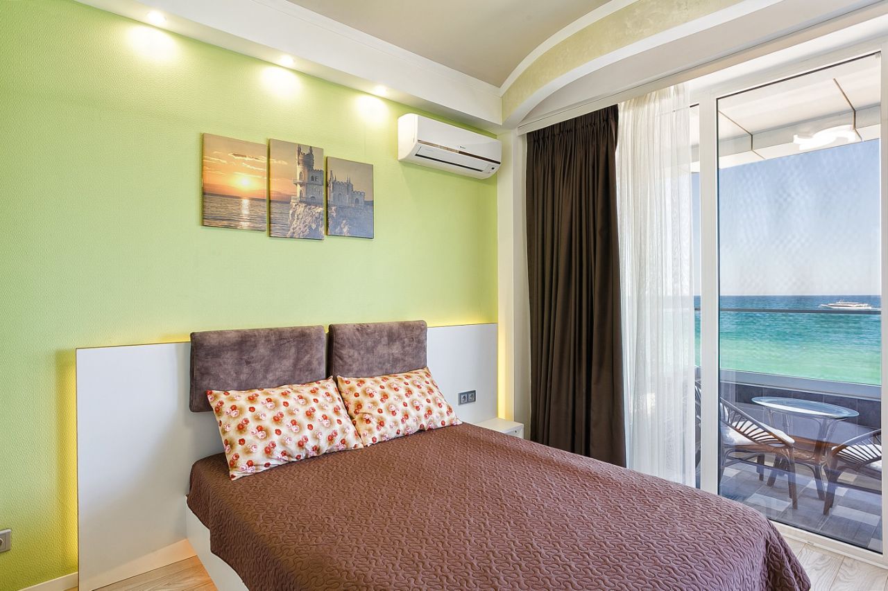 Современный и престижный комплекс апартаментов ЛЕТО расположен на первой береговой линии с прямым выходом на пляж, в Приморском парке, в одном из самых красивых и старейших парков Южного берега Крыма, в самом сердце Ялты. Из окна данного апартамента Вы сможете любоваться великолепным видом на ялтинское побережье, море, горы мыс Мартьян. Несомненным плюсом является наличие развитой инфраструктуры, которая подарит Вам полноценный качественный отдых в любое время года. В шаговой доступности Вы найдёте для себя все ,что необходимо: рестораны, магазины, СПА, набережная для прогулок.