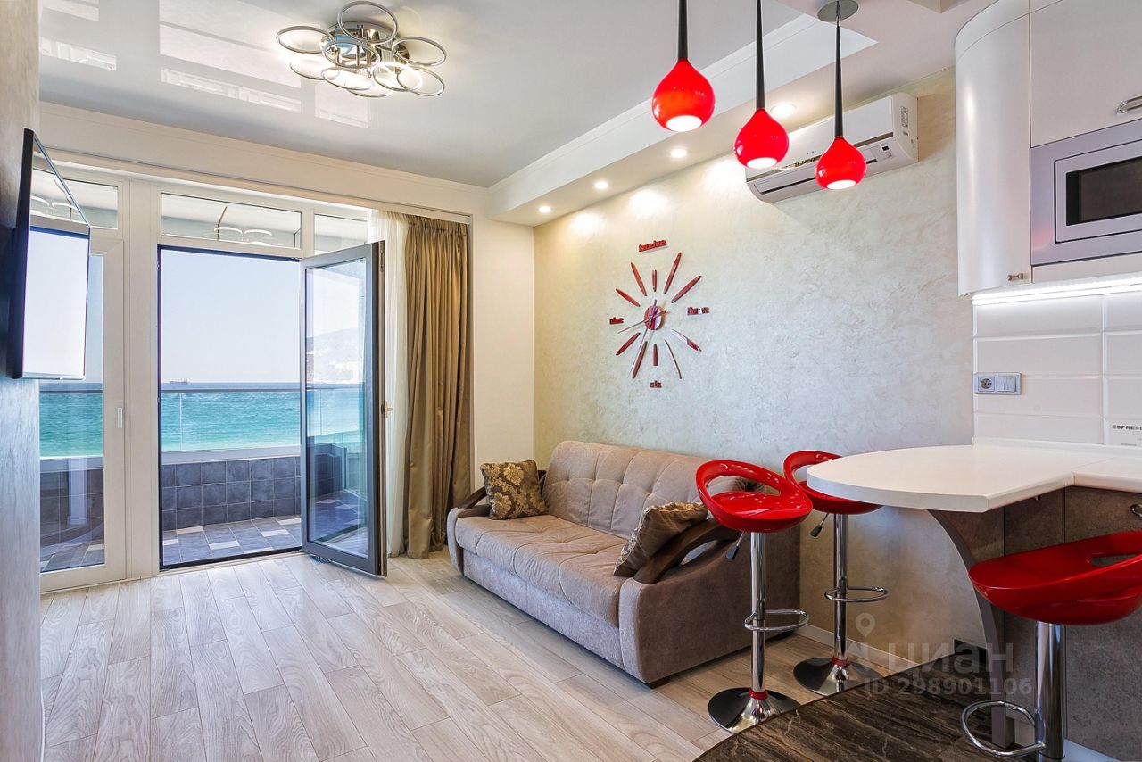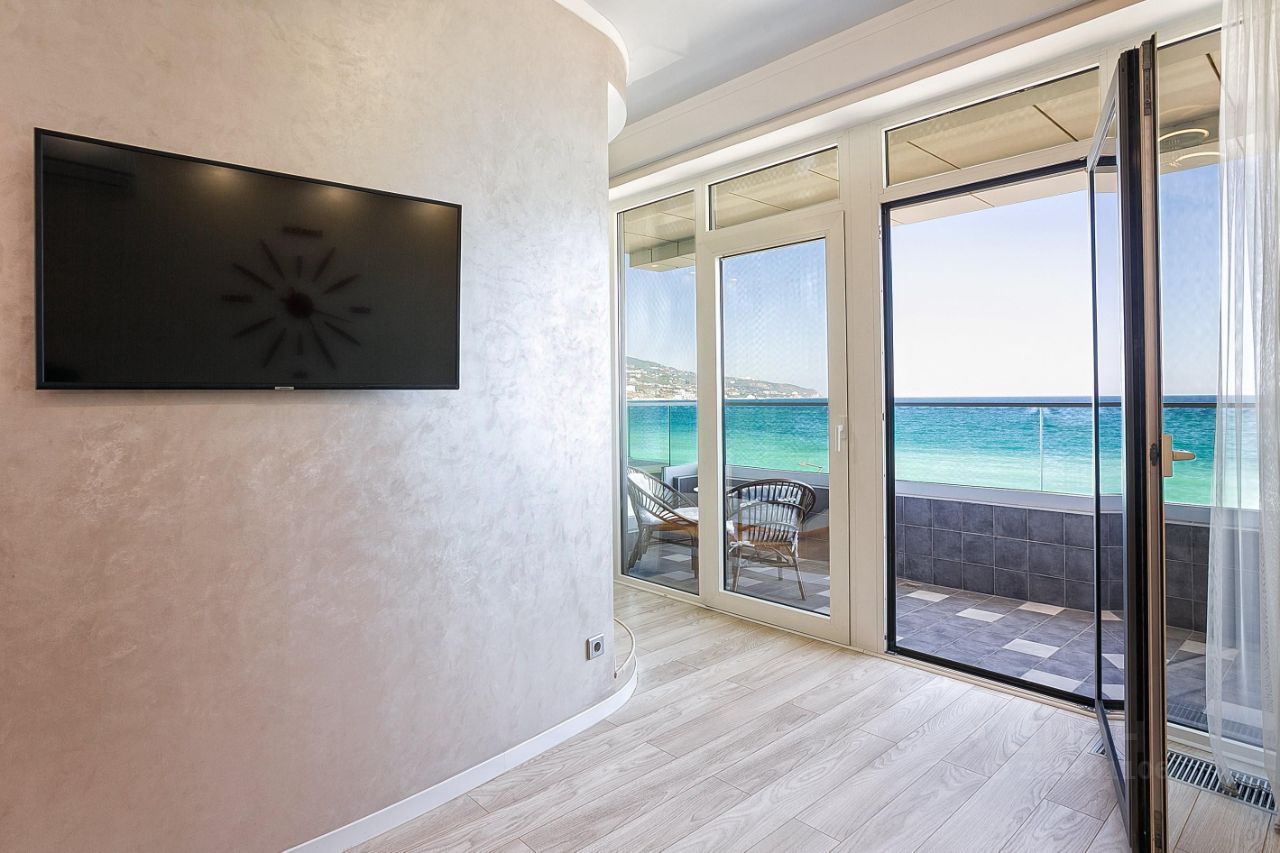 Современный и престижный комплекс апартаментов ЛЕТО расположен на первой береговой линии с прямым выходом на пляж, в Приморском парке, в одном из самых красивых и старейших парков Южного берега Крыма, в самом сердце Ялты. Из окна данного апартамента Вы сможете любоваться великолепным видом на ялтинское побережье, море, горы мыс Мартьян. Несомненным плюсом является наличие развитой инфраструктуры, которая подарит Вам полноценный качественный отдых в любое время года. В шаговой доступности Вы найдёте для себя все ,что необходимо: рестораны, магазины, СПА, набережная для прогулок. Здание комплекса террасное, состоит из двух блоков. Апартаменты оснащены балконом со стеклянным ограждением. В комплексе функционируют три современных лифта, один из которых панорамный. На первых двух этажах располагается гостиничный комплекс ЛЕТО, начиная с третьего этажа частные апартаменты. Также есть конференц зал, ресепшен, выход по мостику в роскошный ресторан ФАБРИКАНТЪ. Покупая свой личный апартамент в комплексе ''Лето'', Вы обладаете возможностью создания собственной атмосферы уюта и комфорта первого класса, с солнечными террасами и красивейшими видами на море и горы. Апартаменты продаются с готовым и качественным ремонтом, всей необходимой мебелью и встроенной техникой. Разделены на отдельную спальню с выходом на открытый балкон, кухню-гостиную, так же со своим выходом на балкон, санузел и зону прихожей. Дом введен в эксплуатацию в 2017 году. Документы все готовы к Сделке. Собственник РФ.