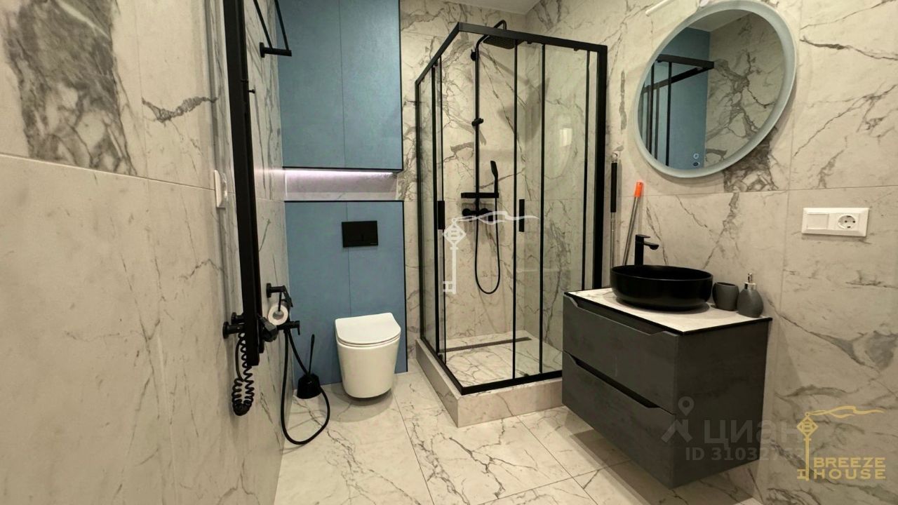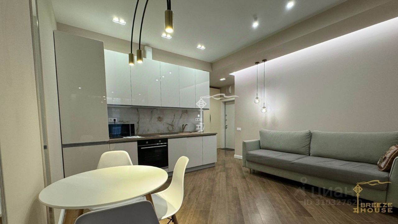 -Мебель: каждое помещение оснащено стильной мебелью вы можете заехать и сразу наслаждаться комфортом. -Модная цветовая гамма: интерьер выполнен в изысканных оттенках пудрово-розового и светло-зеленого, создавая атмосферу уюта и гармонии. -Кухня: полностью укомплектована всей необходимой техникой: холодильник, вытяжка, плита, духовой шкаф, посудомоечная машина. -Дизайн санузла: элегантное пространство с акцентными черными аксессуарами и дизайнерской раковиной, которые придают особый шик и современность. -Освещение под любое настроение: различные сценарии освещения позволяют создавать идеальную атмосферу от мягкого приглушенного света для отдыха до яркого рабочего освещения.