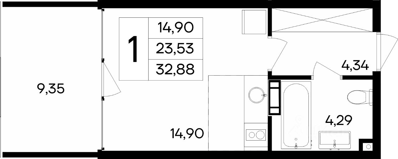 Общая площадь32,88 м2