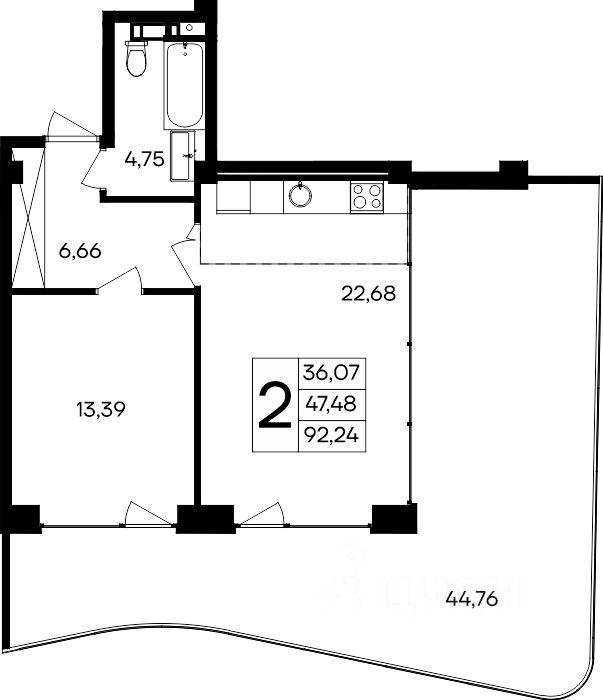 Общая площадь92,24 м2